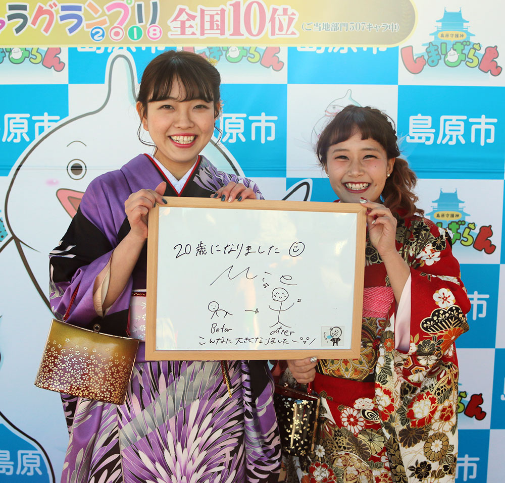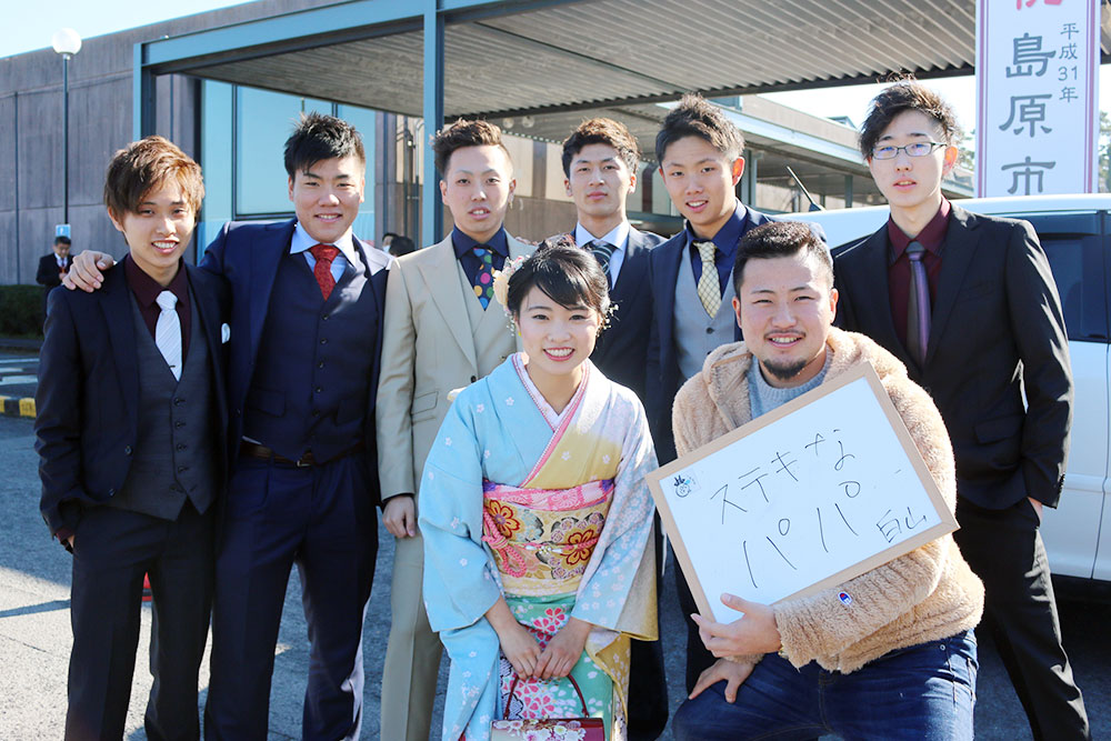 島原商業高等学校OG「子孫繁栄!」嬉しいですね。少子化時代の中、若い世代のこの思いが島原市の活性化ともなるでしょう。会場は同級生との再会を喜ぶ若者の笑顔であふれていました。二十歳の節目を迎え、家族への感謝の気持ちが多く、親御さんも感無量のことと思います。新成人のみなさんも社会人として責任を持って頑張ります!と決意を新たにしました。これからいろんな人との出会いの中でたくさんのことを学びながら、何事にも挑戦してがんばってください。